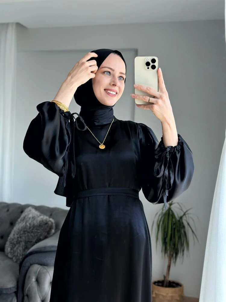 İpeksi dokusuyla kumaşına hayran kalacağınız bir elbise. Manken 175 cm 50 kgüzerindeki ürün 133 cm 36 beden(Daha uzun veya kısa dikim yaptırabilirsiniz)