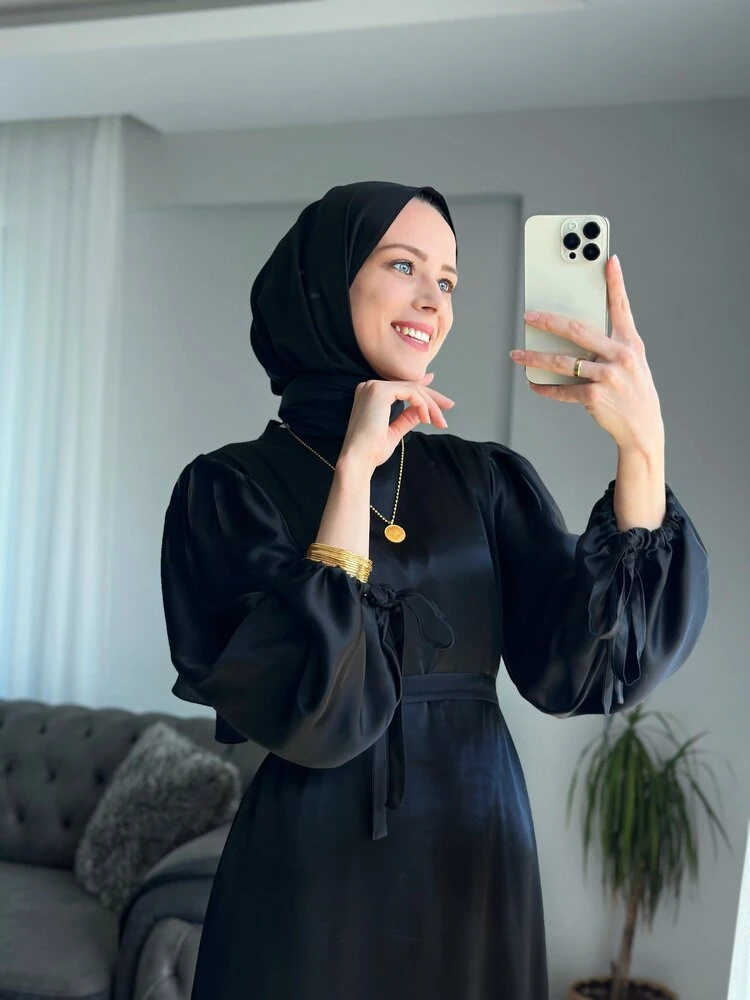 İpeksi dokusuyla kumaşına hayran kalacağınız bir elbise. Manken 175 cm 50 kgüzerindeki ürün 133 cm 36 beden(Daha uzun veya kısa dikim yaptırabilirsiniz)